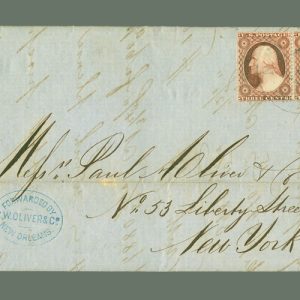 MRS1765 – 1857 3c Washington Pair (#25) on Folded Business Letter To New York, NY