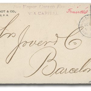 MRS1850 – 1898 5c Grant (#281) on Cover from Puerto Rico to Barcelona, Spain, via France