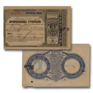 MA1913 – 1883-94 Postal Note – Only 1 Available – Homer Lee Banknote Co., Serial Number 1, First Day of Use