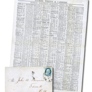 MA1989 – 1861 US #20 on Cover to John Torrance, Toronto, Folded Circular from Tucker Whitin & Carrere of Boston