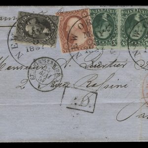 MRS1092 – 1851-57 3c, 10c, 12c Issues on 1857 Folded Cover to France