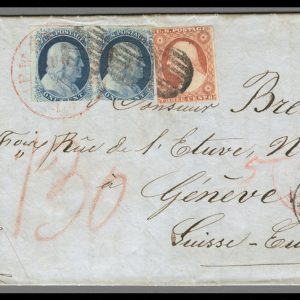 MRS1414 – 1851-57 Issue 1c Franklin Pair and 3c Washington Single on Folded Letter to Switzerland