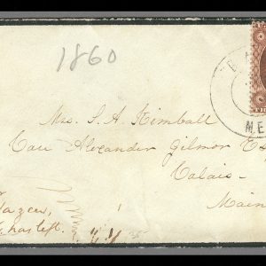 MRS1430 – 1857 3c Washington Type III Single (Scott #26) on Mourning Cover from Bath, Maine