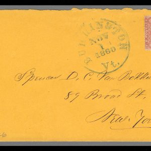 MRS1431 – 1857 3c Washington Type III Single (Scott #26) on Cover from Burlington, VT
