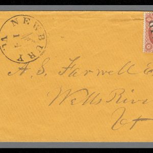 MRS1433 – 1857 3c Washington Type III Single (Scott #26) on Cover from Newberry, VT