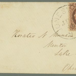 MRS1458 – 1857-61 3c Type III Single (Scott #26) Tied On Cover From Jonesville, New York