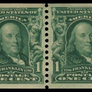 318 – 1908 1c Franklin, Blue Green, Vertical Perf. 12 Coil