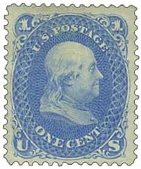 102 – 1875 1c Franklin, Blue, Perf. 12