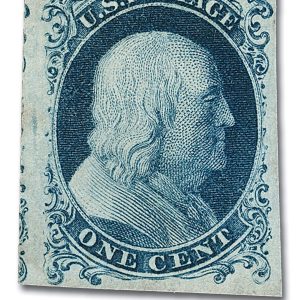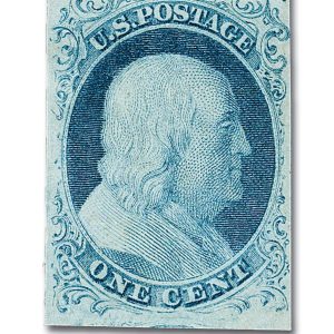 6 – 1857 1c Franklin, Blue, Type Ia, Imperf.