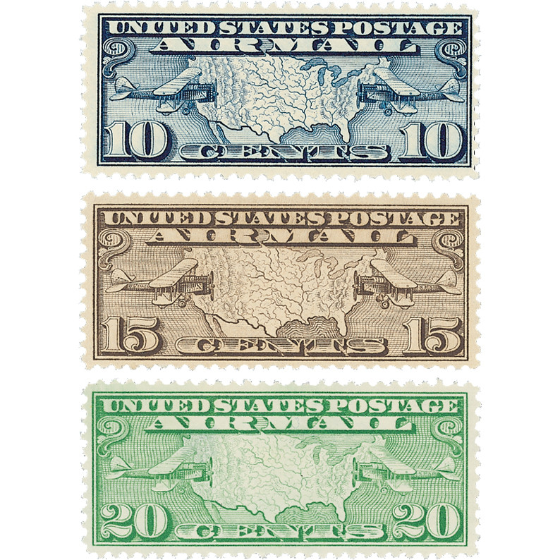 C7-9 – 1926-27 US Map & Mail Planes, Set of 3 Stamps