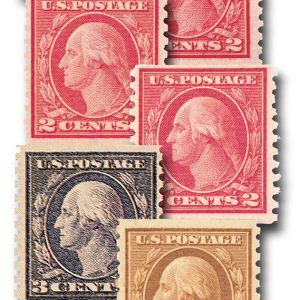 452-58 – 1914-16 Regular Issues, Single Line Watermark, Perf. 10 Vertically, Complete Set of 7 Stamps