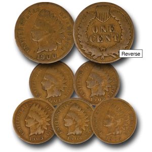 MCN107 – Indian Head Pennies, 1900-05, G-VG, Set of 6