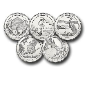 MCN085 – 2015 America the Beautiful Quarters, Complete, Philadelphia Mint, Set of 5