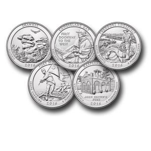 MCN086 – 2016 America the Beautiful Quarters, Complete, Philadelphia Mint, Set of 5