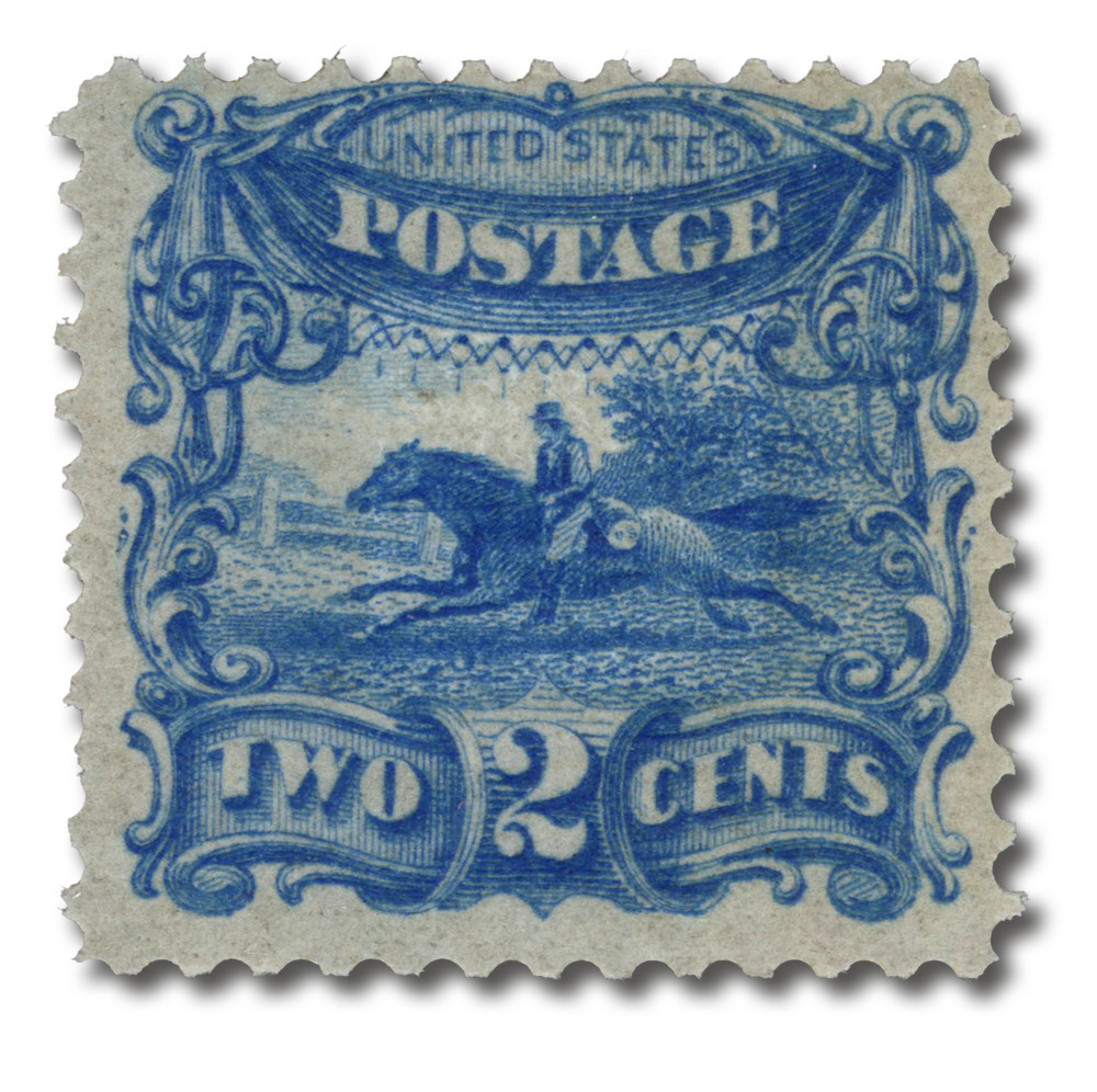 113-E3e – 1869 2c Pony Express Essay, Plate on Stamp Paper, 9x9mm Grill, Perf. 12 With Gum, Various Colors, Mystic’s Choice