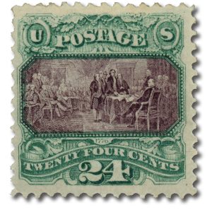 120 – 1869 24c Declaration of Independence, Green & Violet, Hard Wove Paper, G Grill, Perf. 12