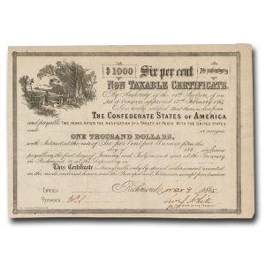 MA2112 – 1865 Confederate Non-Taxable Certificate