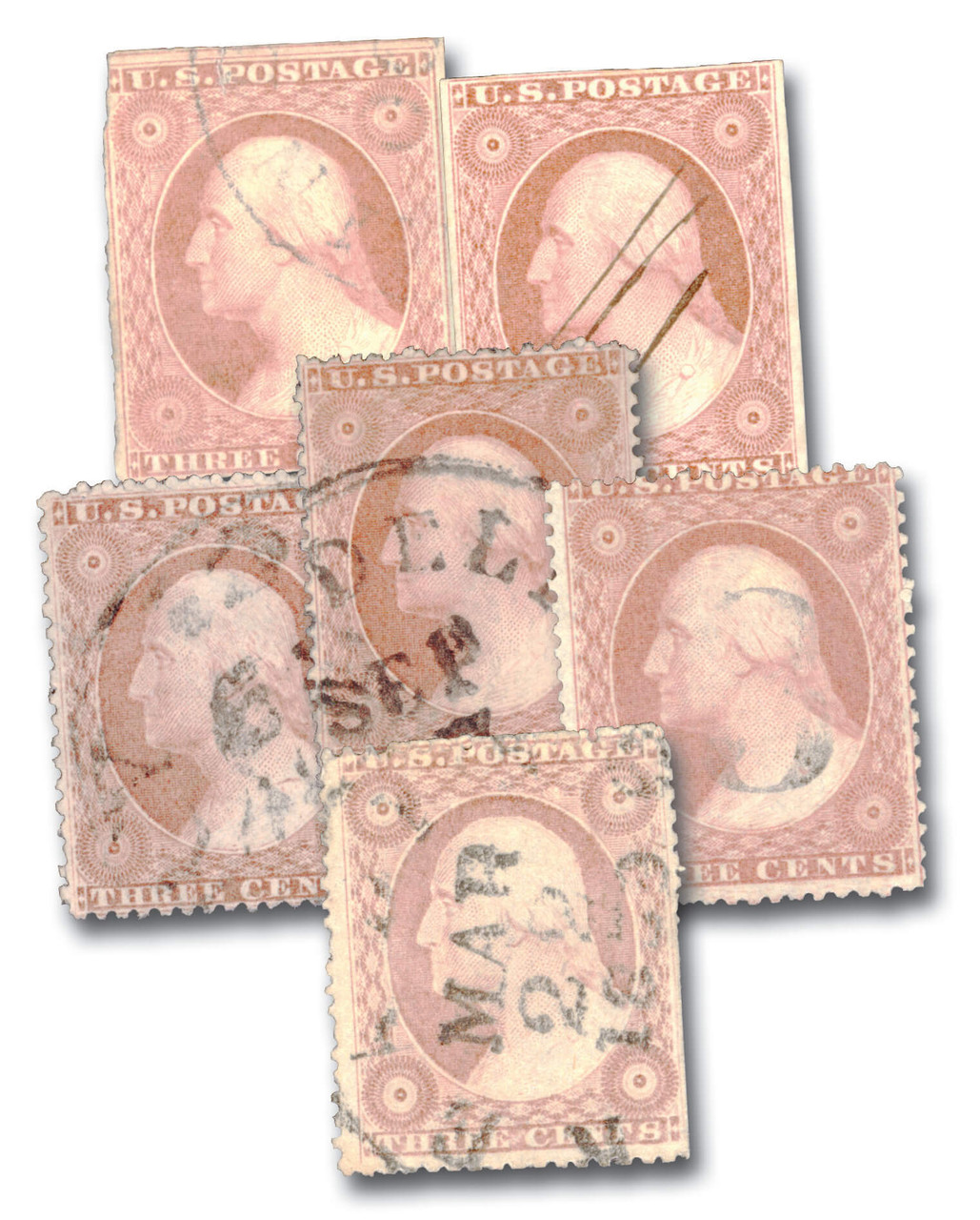 11//26A – 1852-57 3c Washington Look-Alikes, 6 Stamps (11,11A,25,25A,26 & 26A)
