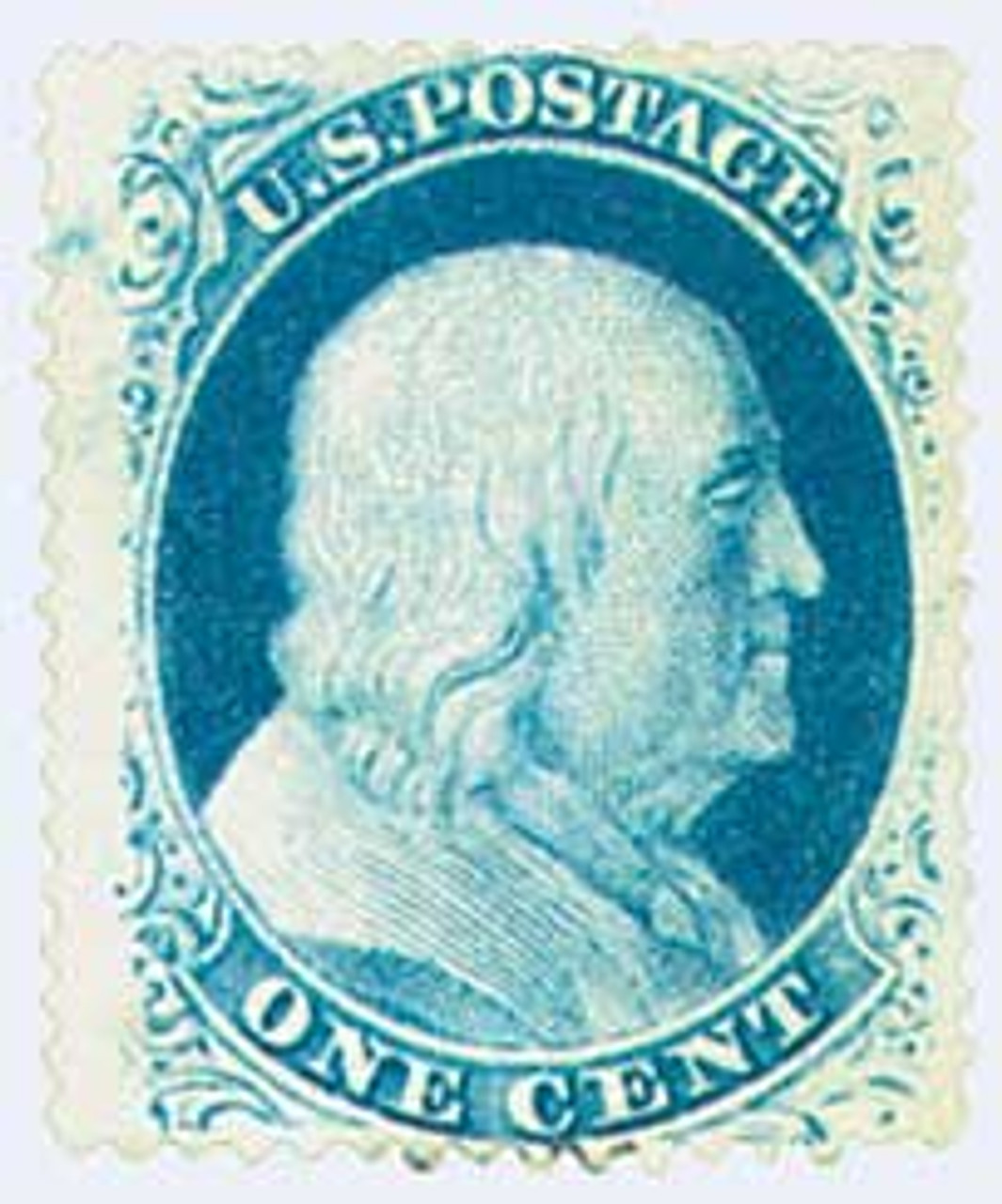 About the 1857-61 Series:  The 1857-61 issues were the very first perforated U.S. stamps.  Their designs were reproduced from the imperforate plates of 1851.  Because the same plates were used, the perforate stamp types don’t differ much from the corresponding imperforate stamps.  The entire series (U.S. #18-39) is noted for having narrow margins because it now had to accommodate the perforations.  Some newer plates were created to allow for more space between the stamps.