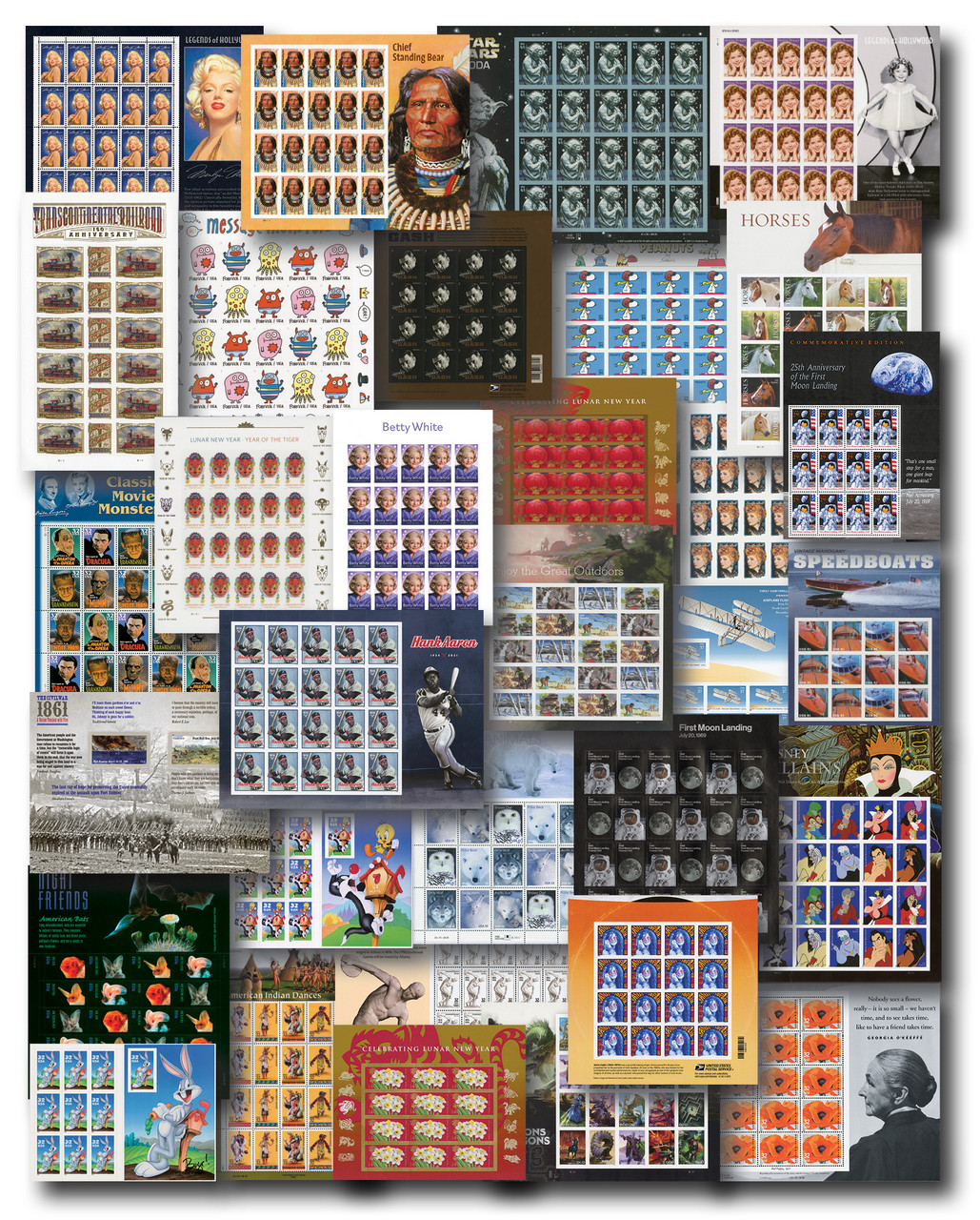 2841//6002 – 1994-2025 Giant 32 Year U.S. Mint Sheet Collection, 123 Sheets, 2112 Stamps