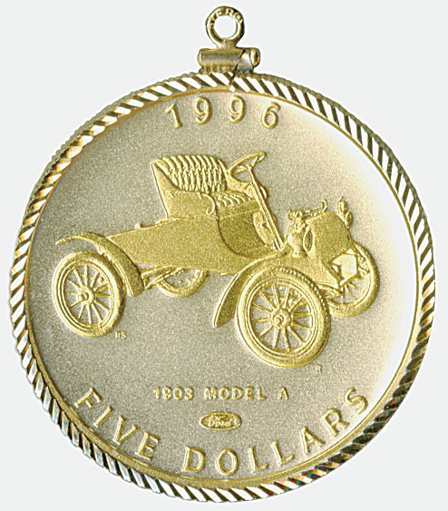 Issued by the Republic of the Marshall Islands in 1996, this $5 commemorative coin celebrates the historic 1903 Ford Model A.