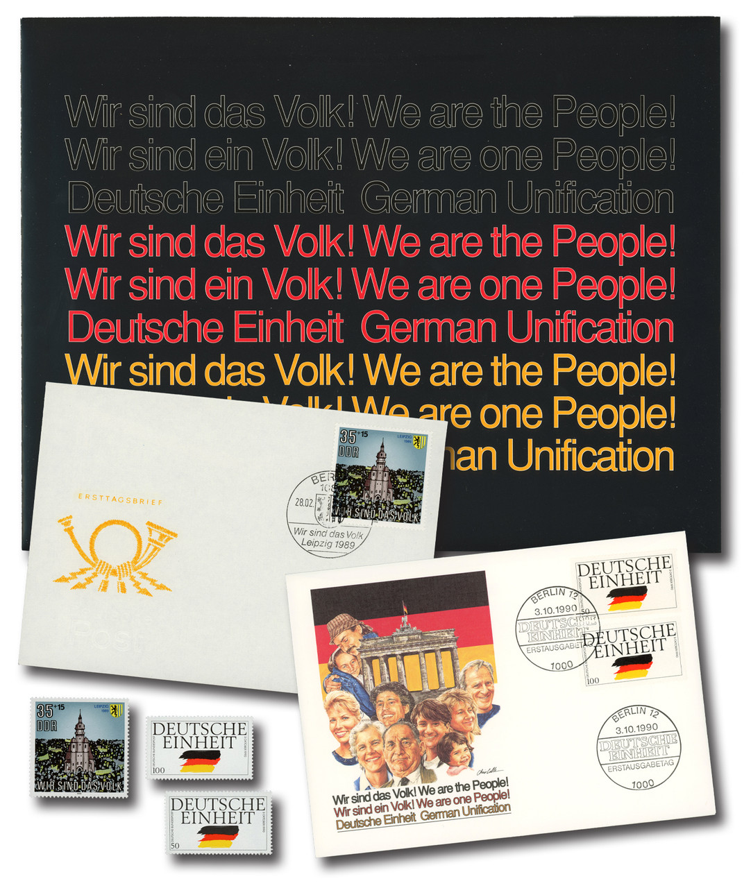 As a collector, you know the satisfaction of adding real history to your collection.  The 1990 Volk Presentation Pak is just that.  It contains two First Day Covers plus a presentation folder outlining the historic events that led to the reunification of Germany.  Each limited-edition First Day Cover commemorates a milestone leading up to the fall of the Berlin Wall and the joyous reunion between East and West Germany.
