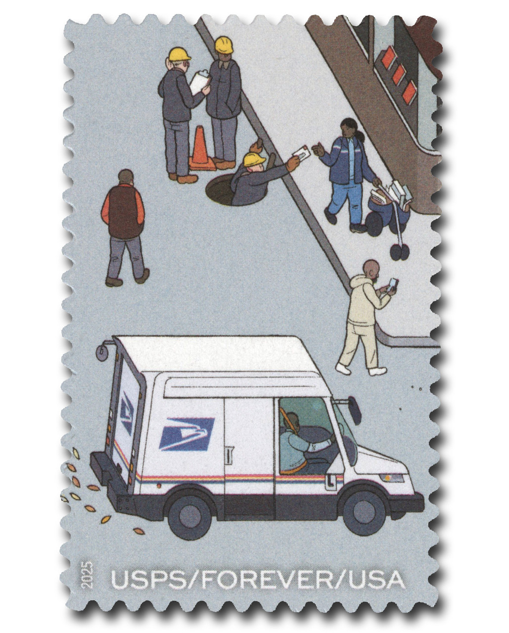 6023n – 2025 First-Class Forever Stamp – 250th Anniversary of Delivering Mail: Utility Woker in Manhole