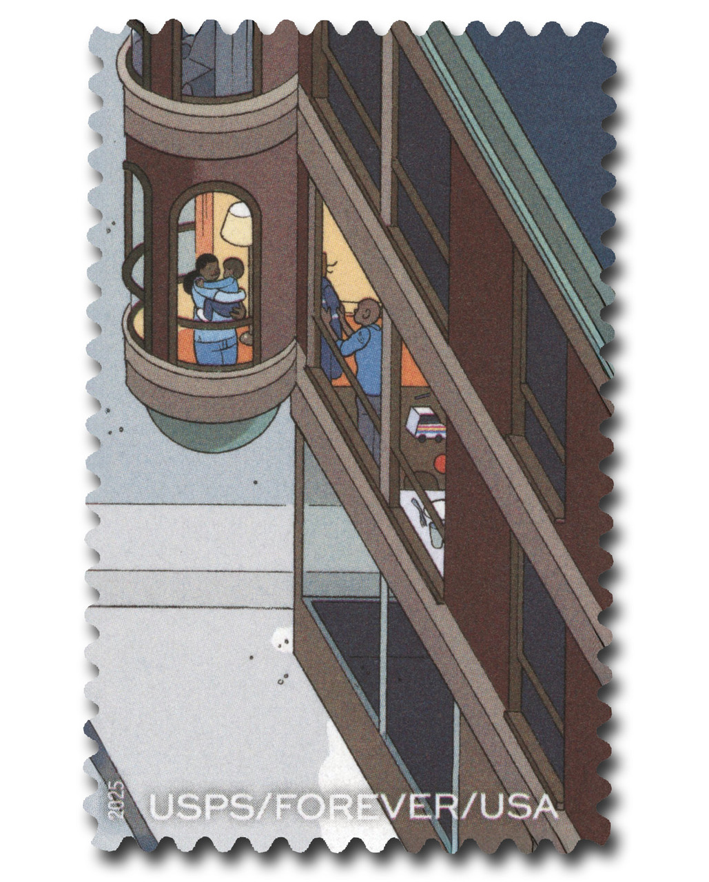 To honor this milestone, this pane of 20 stamps was released, each depicting moments in the life of a modern mail carrier over a year’s time. These stamps tell the story of a community, following the carrier as she braves all seasons delivering letters and packages, while making connections with members of the community. The stamps celebrate the mail carriers who embody the iconic creed, “Neither snow, nor rain, nor heat, nor gloom of night stays these couriers from the swift completion of their appointed rounds.”