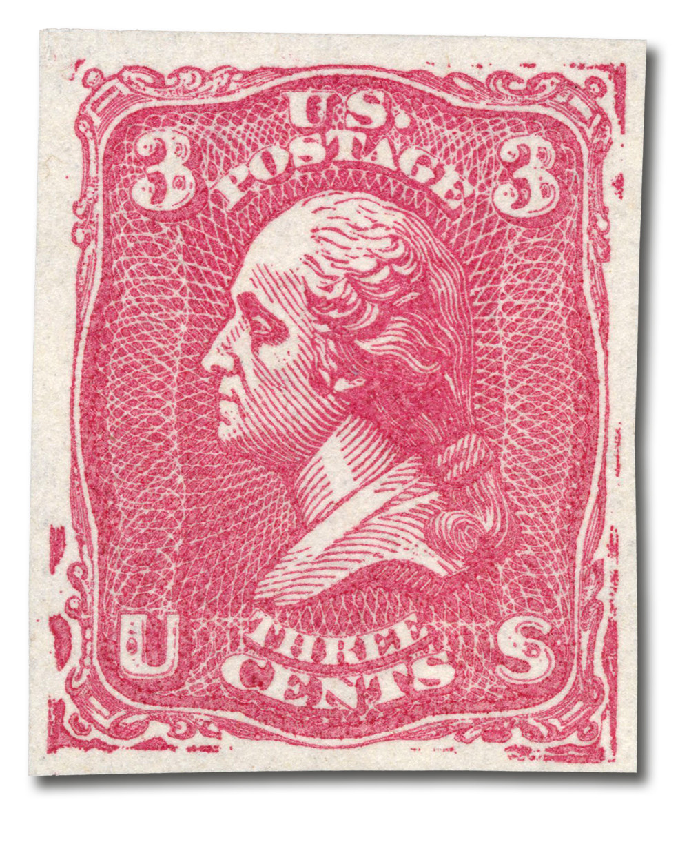 79-E25a – 1861 3c Washington Essay, Dark Red, Plate on Hard White Transparent Wove Paper
