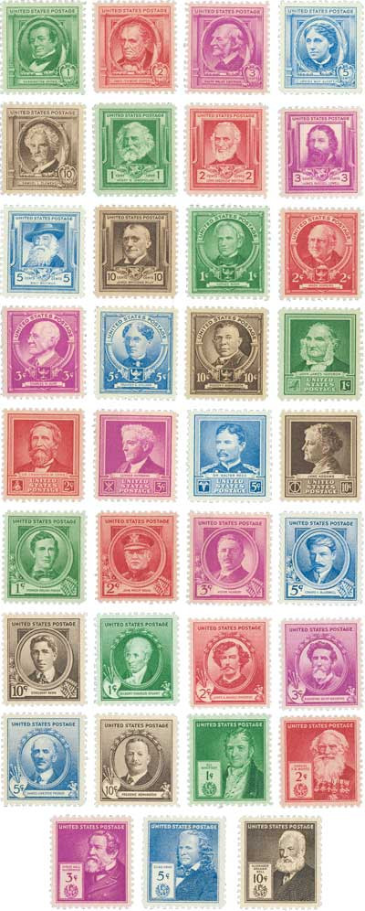 859-93 – 1940 Famous Americans Series, Complete Set 35 Stamps