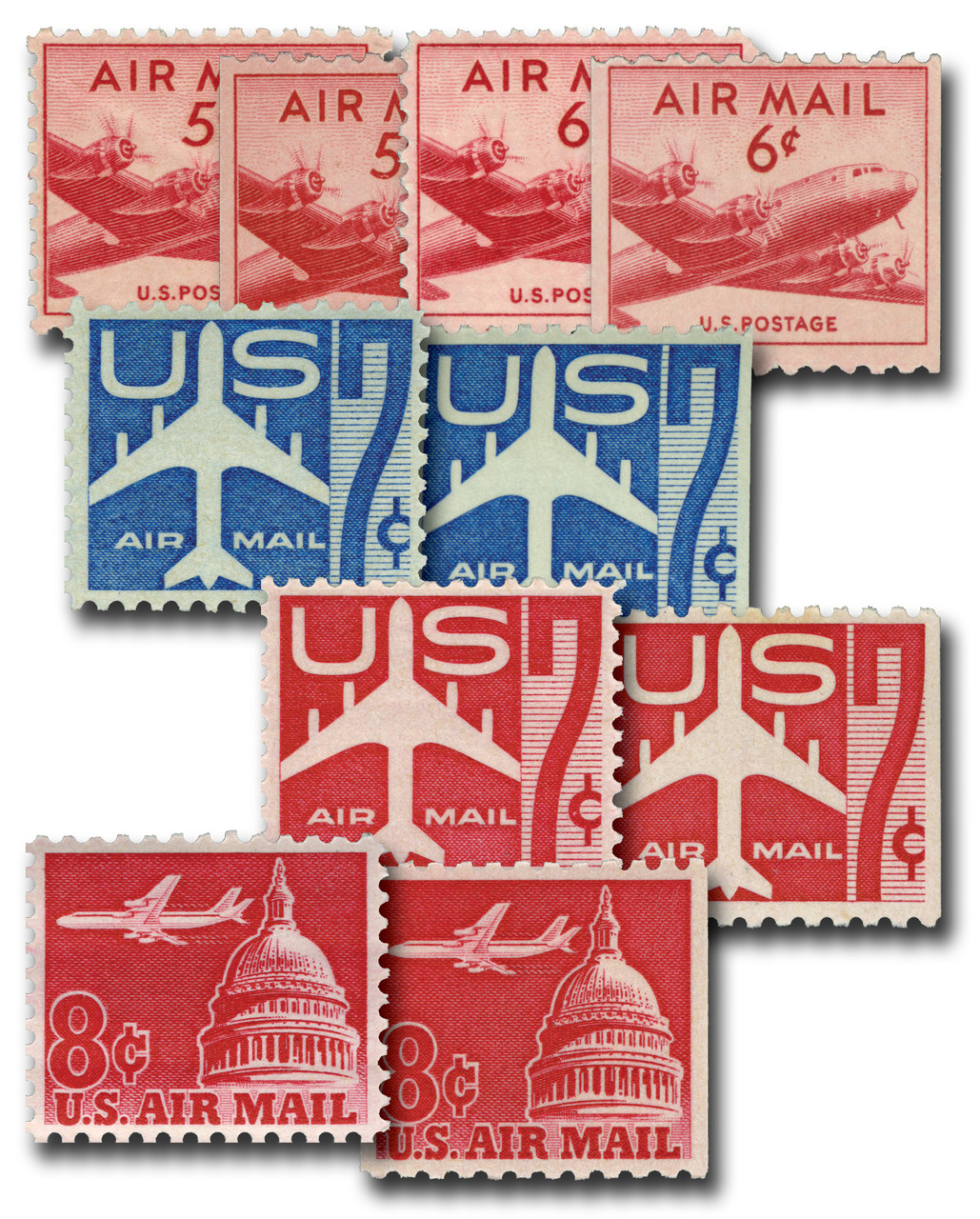 C33//C65 – 1946-62 US Airmail Look-Alikes, Set of 10 Mint Stamps