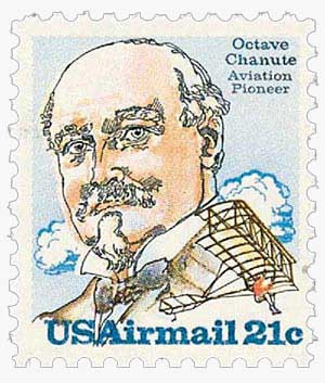This stamp honors this civil engineer and aviation pioneer. Chanute’s major contribution to aviation occurred in 1896, when he designed his hang-glider. It became a standard for future glider design.