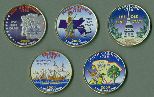 This set of five 2000 state quarters honoring have a special twist. All five quarters have been enhanced by Mystic with colors that are permanently bonded to the coin, so you’ll see their intricate designs in special detail.