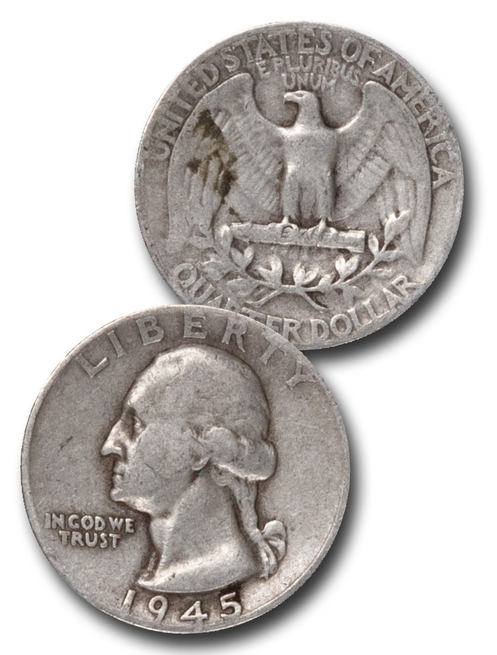 The quarter featuring George Washington was first produced from an alloy made of 90% silver and 10% copper. These silver Washington Quarters were issued from 1932 to 1964. Each one is more than 60 years old and has been preserved for you to enjoy today.