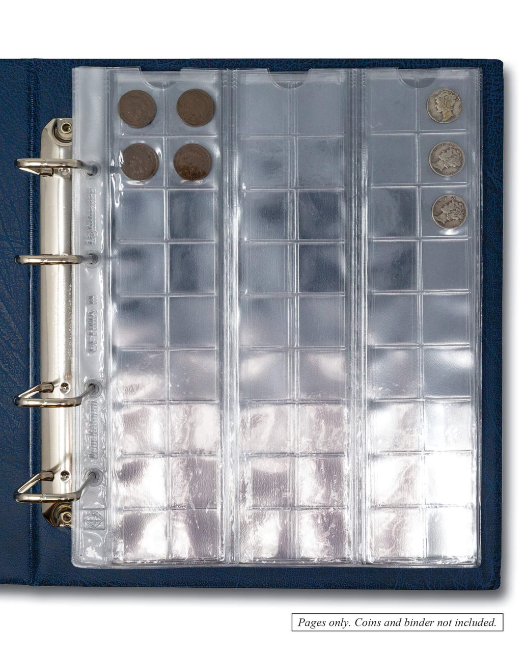 You’ll receive 5, crystal-clear Lighthouse Optima pocket pages with room for 54 coins per page. Fits US penny- or dime-sized coins perfectly. Double-sided so you can view your coins from the “heads” or “tails” side. Specially designed sliding inserts make it easy to add or remove coins from the page. Four-hole-punched to fit Lighthouse Optima binders like this.