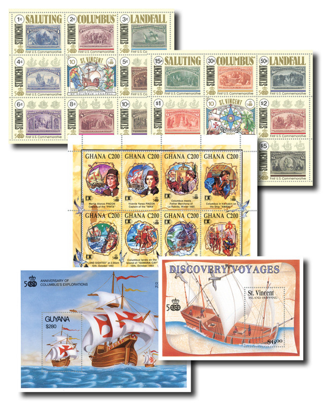 • A souvenir sheet issued by St. Vincent commemorating the discovery voyages and island hopping that led to the settlement of many island nations.