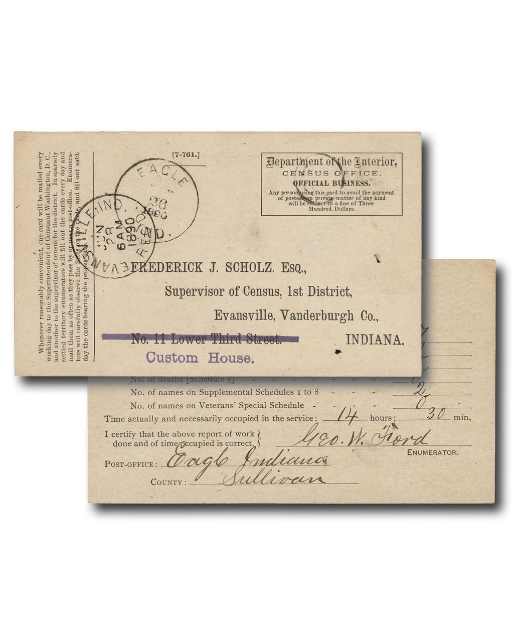 MRS1821 – 1890 Department of the Interior Census Office Card