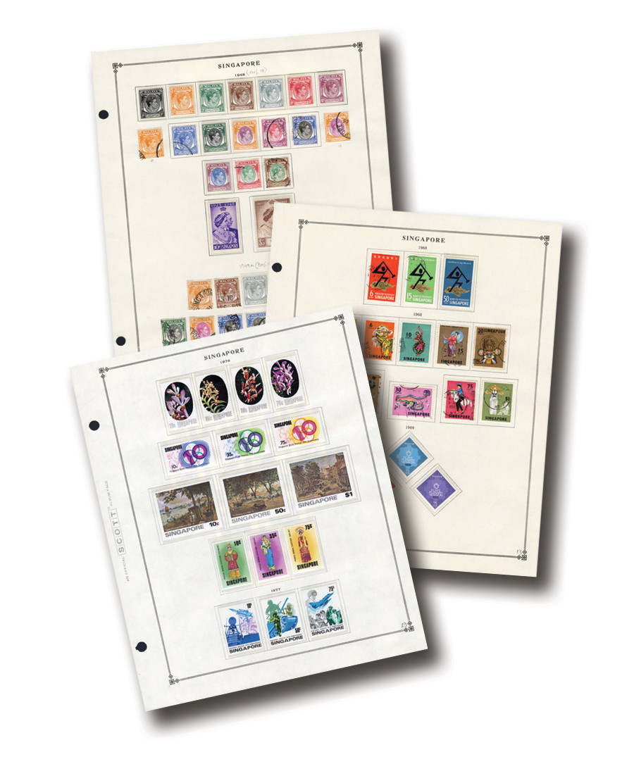 600+ mint and used Singapore stamps, 1948-2004. Sets and singles. On 30-40 album pages. Scott Catalogue value $1,729.