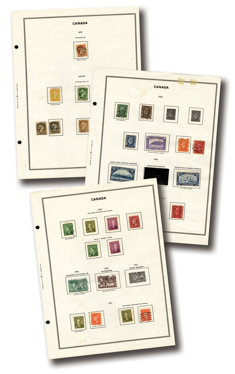 200+ mint and used Canada stamps, 1858-1976. On 40 album pages. Scott Catalogue value $1,300.
