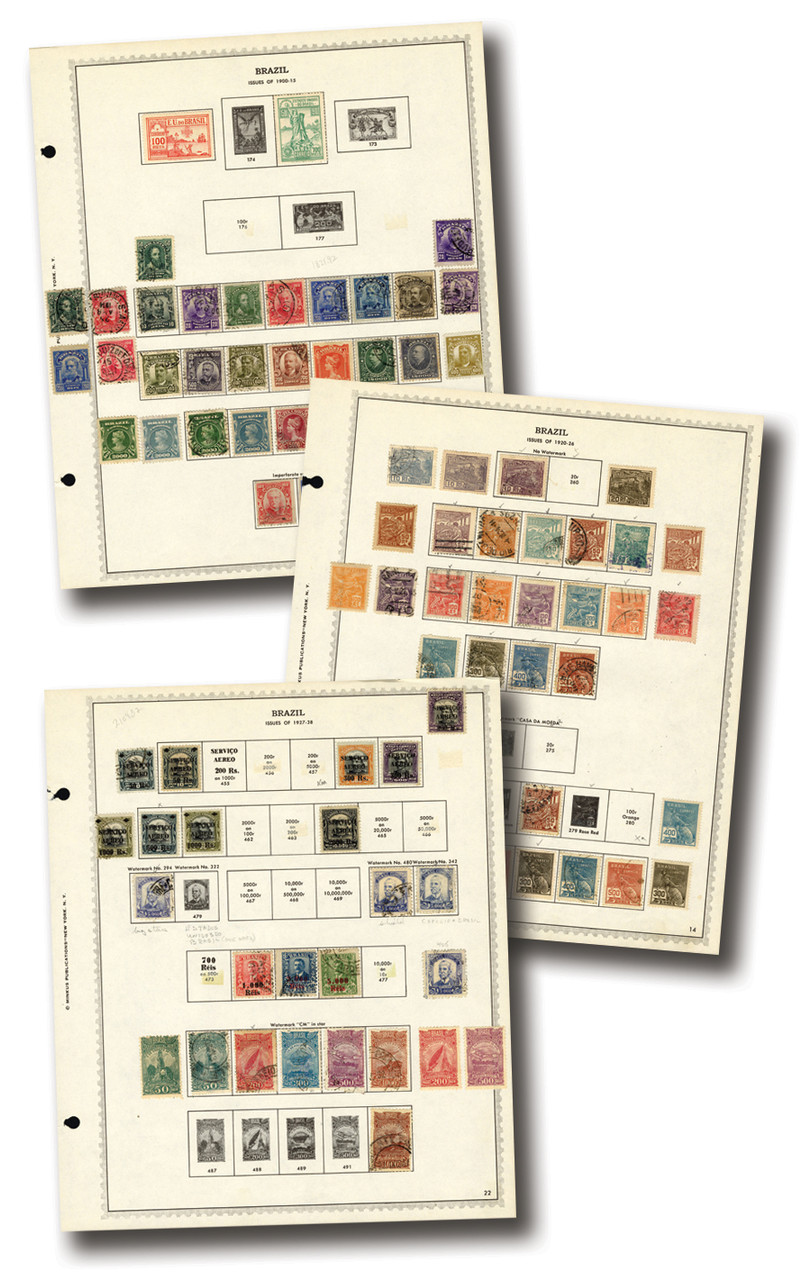 500+ mint and used Brazil stamps, 1850-1964. On 100 album pages. Scott Catalog value $1,756.