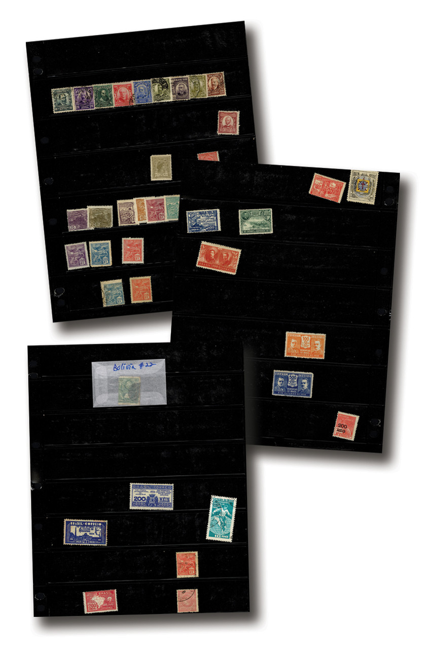 75+ mint and used Brazil stamps, 1800s-1900s. On black stock pages. Scott Catalogue value $230.