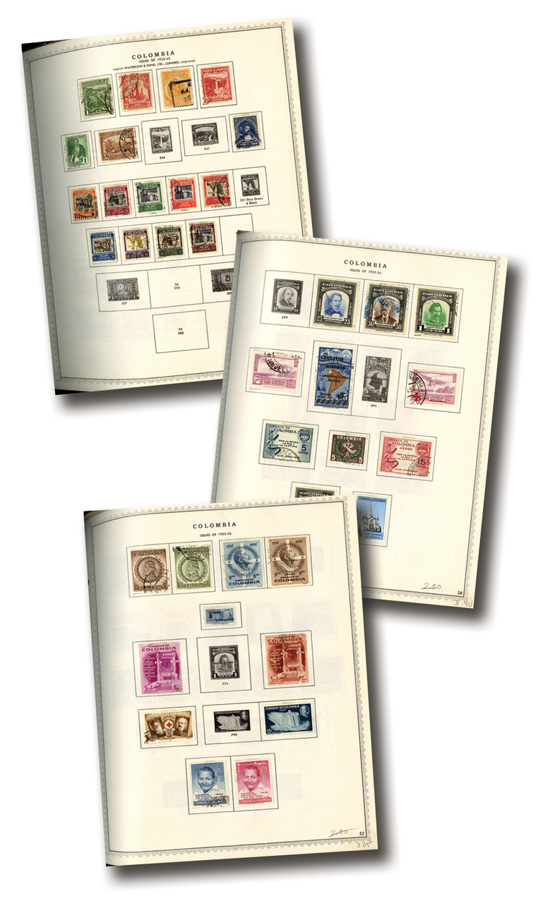 500+ mint and used Colombia stamps, 1881-1978. On 100 album pages. Scott Catalogue value $2,037.