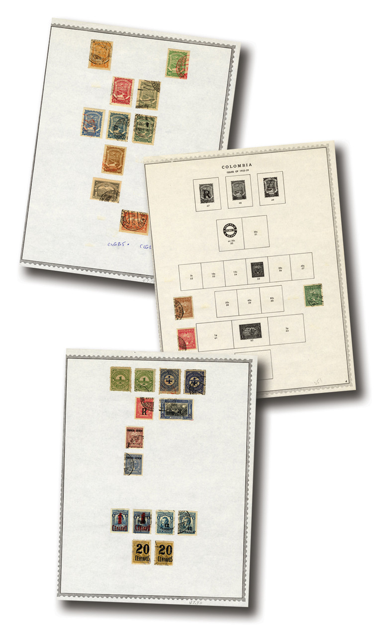 100+ used Colombia stamps, 1923-44. On album pages. Scott catalogue value $245.