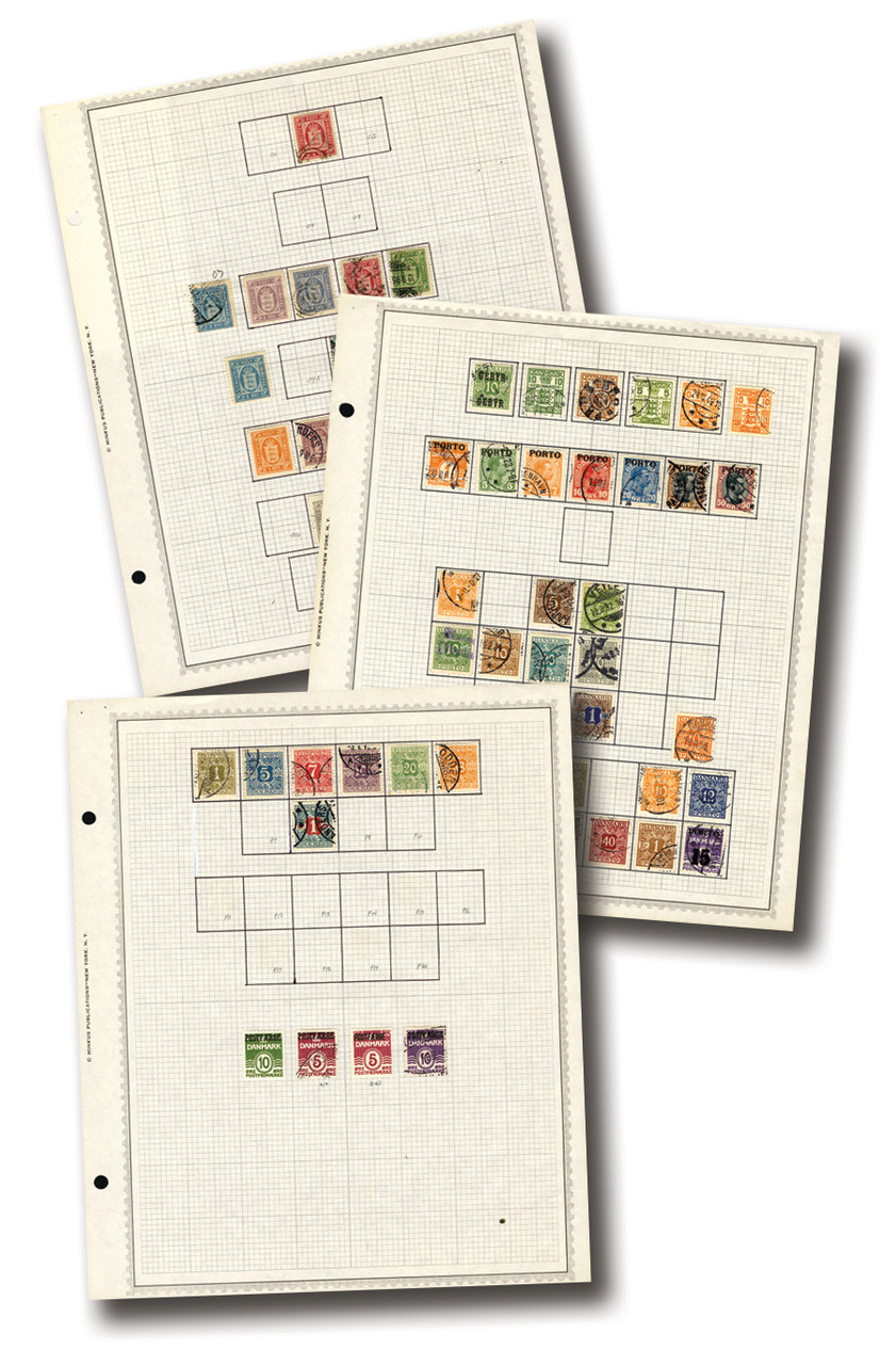 70+ used Denmark stamps, 1870-1950s. On 4 album pages. Scott catalogue value $406.