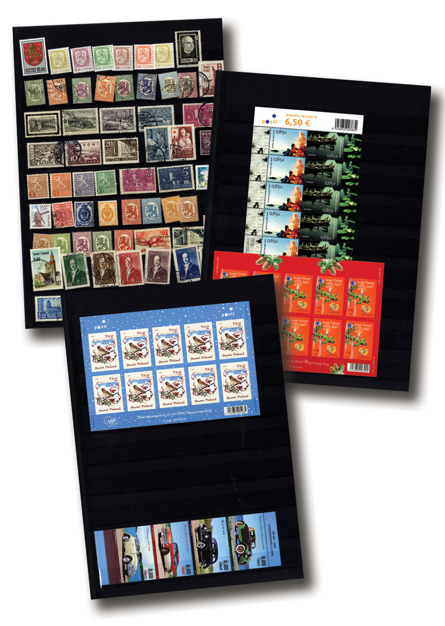 1,500+ mint and used Finland stamps, 1917-2009. Some other countries included. In stock book. Estimated Scott Catalogue value $400.