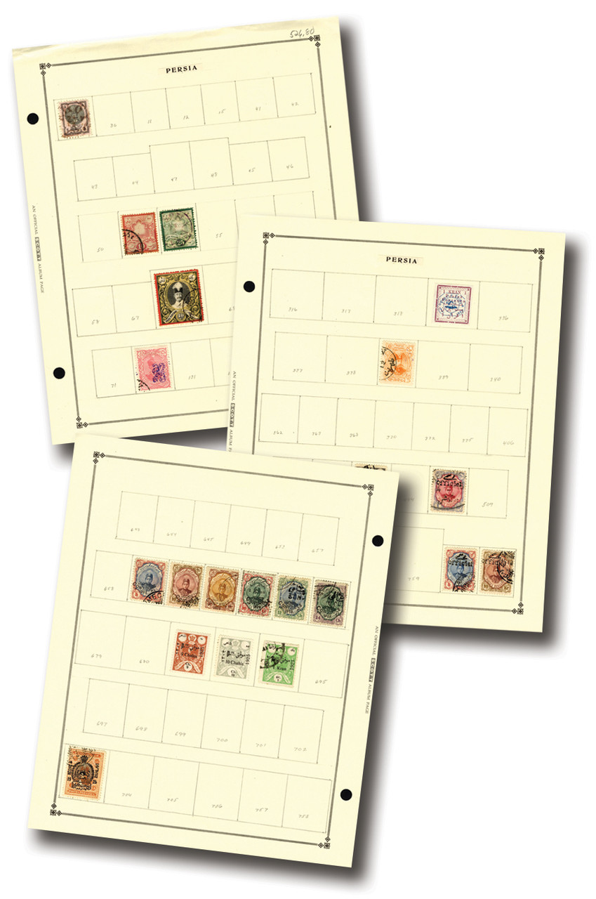 90+ mint and used Iran stamps, 1876-1935. On album pages. Scott Catalogue value $526.