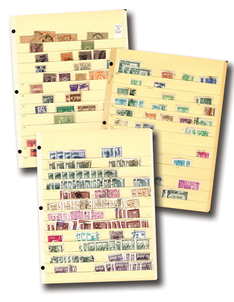 225+ used Korea stamps, 1903-80s. In stock binder album. Scott catalog value $1,000.