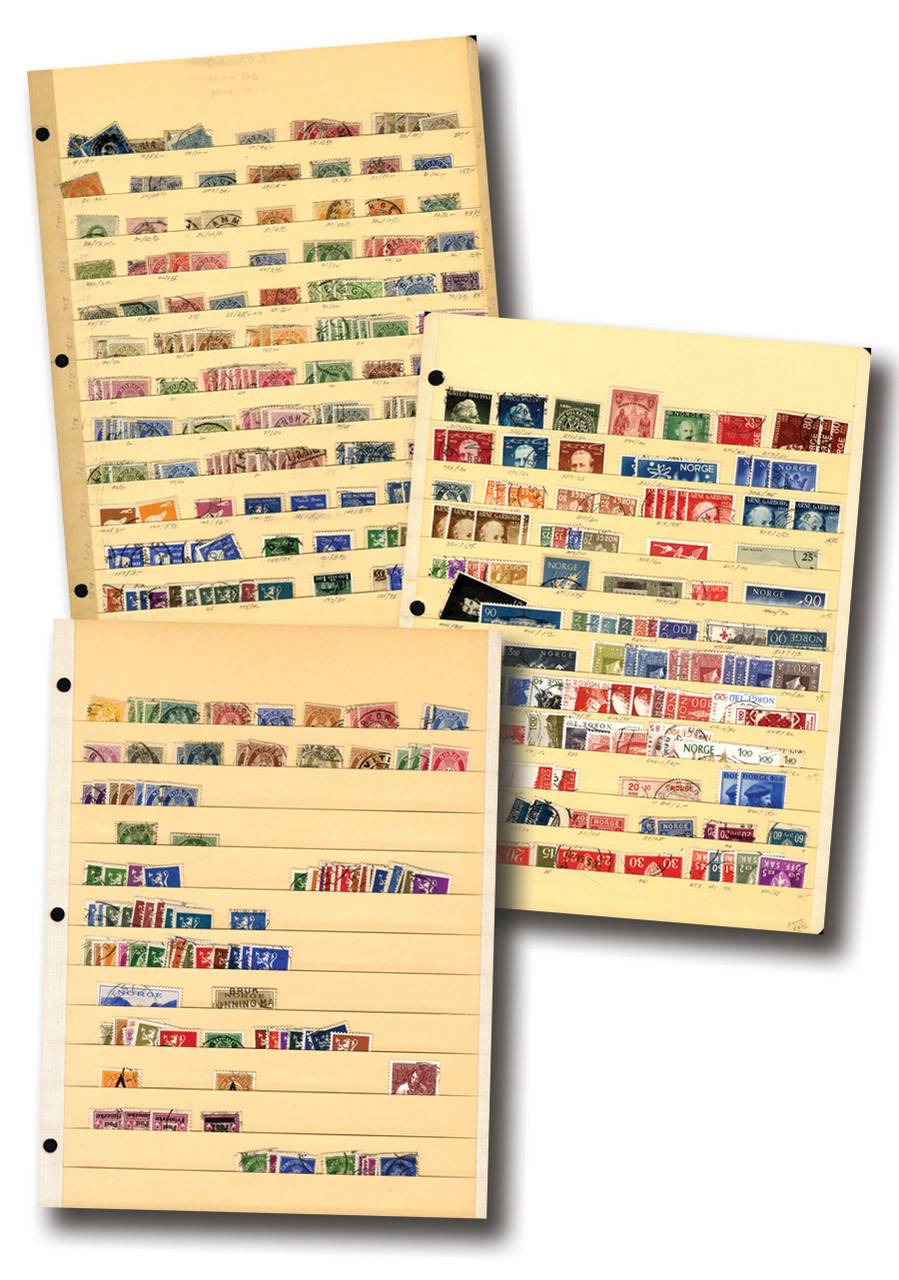 225+ used Norway stamps, 1856-1974. In stock pages. Estimated Scott Catalogue value $525.