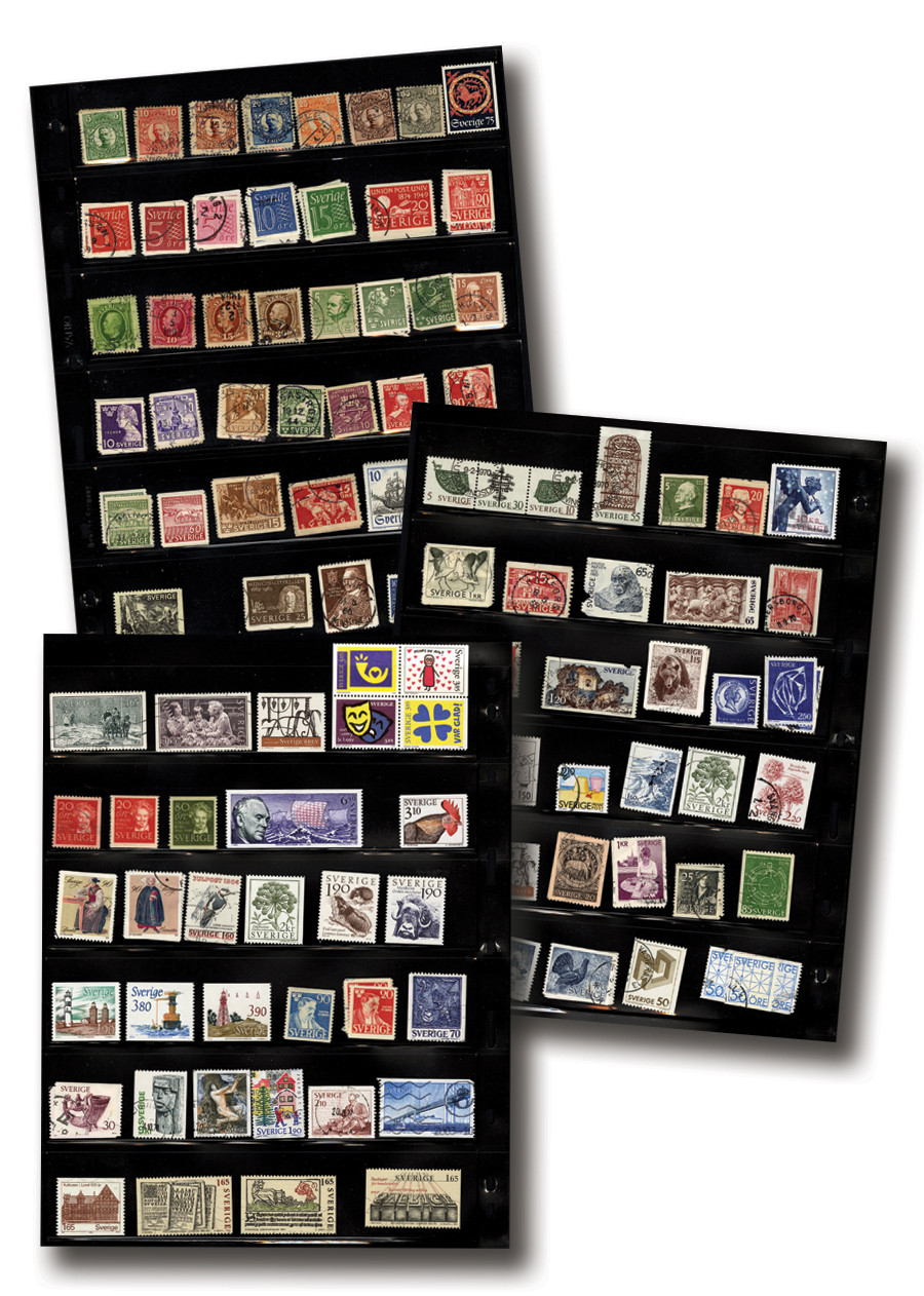 600+ Sweden stamps, 1911-2010. In black stock pages. Scott Catalogue value $250.