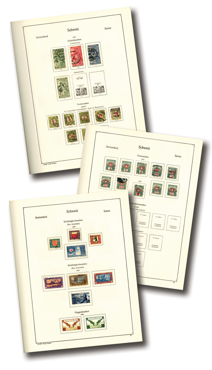 1000+ Switzerland stamps, 1850-1975. In Kabe Specialty album. Scott Catalogue value $4,650.